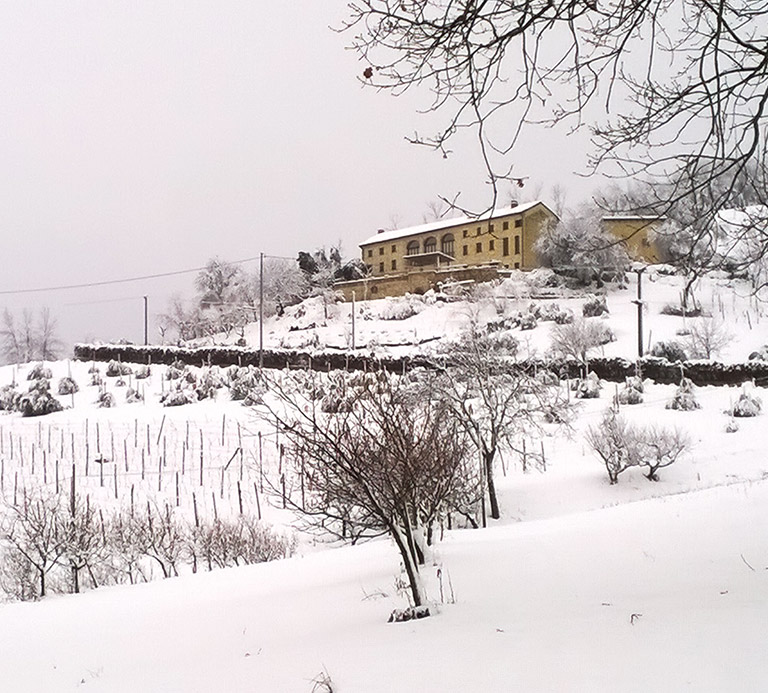 Era il 1999, quando dopo lunga e accurata ricerca, il sogno finalmente vedeva la sua realizzazione: la cascina Serra dei Monti. Tutta esposta a sud, a mezza costa subito sotto una delle alture più elevate di queste colline, località Madonna dei Monti, sita nel Comune di Ottiglio al confine tra la provincia di Alessandria e quella di Asti. In mattoni a vista e tufo, arenaria che qui chiamano Pietra da Cantoni, la cascina Serra dei Monti è un tipico cascinale monferrino, con relativi annessi rurali, costruito nella prima metà del 1800 nelle adiacenze dei resti di quello che era un insediamento monastico benedettino settecentesco, in prossimità dell’antica “Ecclesia Sancte Marie de Montibus” risalente al XII secolo.