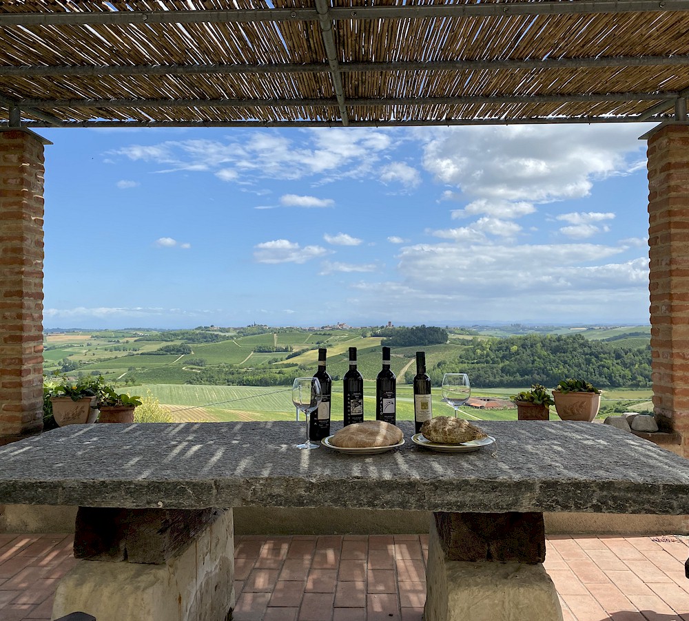 Seduti al tavolo di granito all’ombra del gazebo in cortile, di fronte ad una vista che non uguali sulle dolci colline del Monferrato Casalese, con le vigne e le altre colture che si alternano ai boschi in un rilassante scenario rurale rispettoso della biodiversità agricola, uno scenario punteggiato dal susseguirsi dei campanili che individuano le chiese di ciascuno degli innumerevoli borghi che spiccano sullo sfondo delle Alpi e dell’Appennino, è una sorprendente immersione nella natura del luogo.